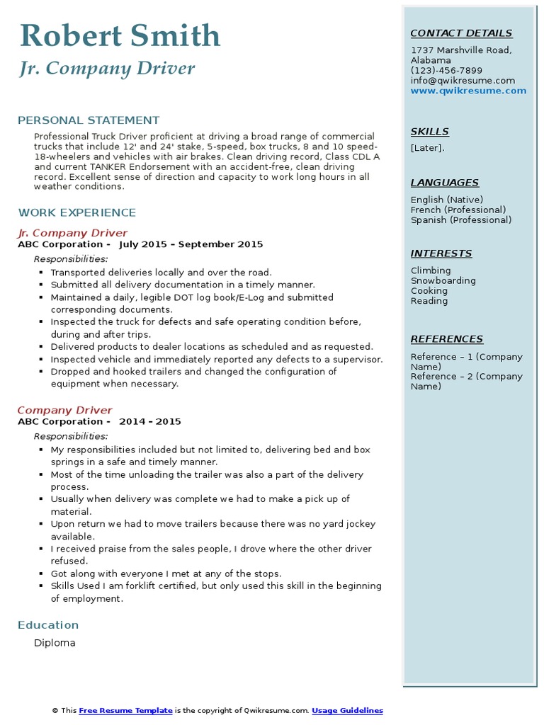 Truck Driver Resume Examples And 25 Writing Tips